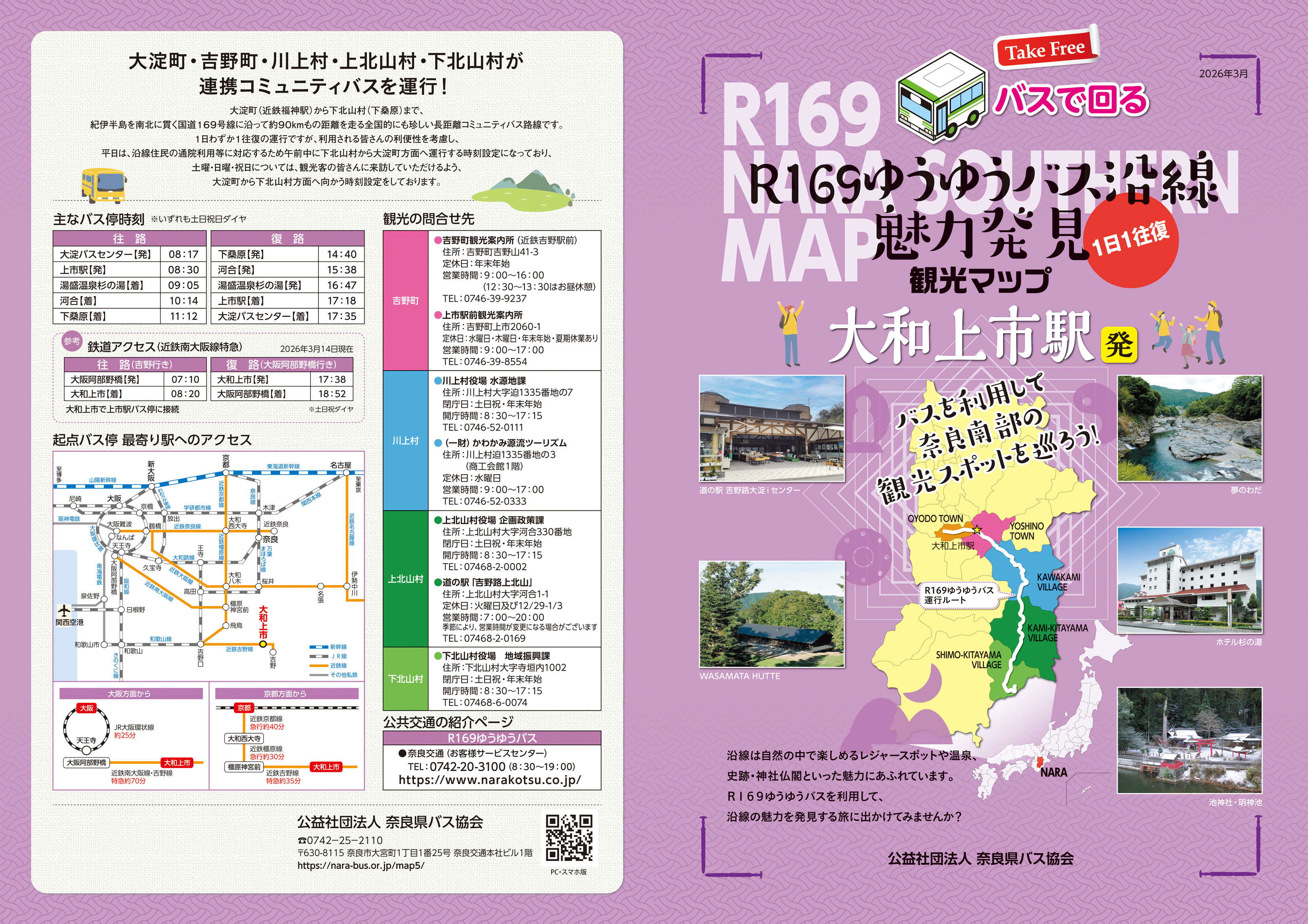 R169ゆうゆうバスは、「異常気象時における雨量通行規制区間」を運行いたしますので、ご利用の際は、奈良交通のホームページをご確認ください。